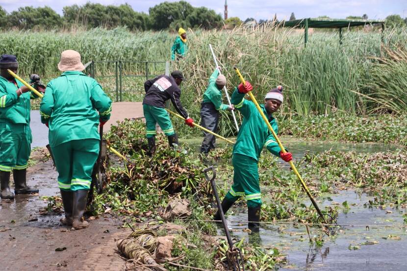 Zama says: ‘Thekga is just one example. The Blue Deal has also led to increased interest in international initiatives for Blesbokspruit. For example, we have a partnership with a Dutch company called Netics, which makes geotextile, a circular and biobased alternative for synthetic textiles such as polypropylene, out of water hyacinth. But there are also companies that turn it into biofuel or compost, the list is endless. And that is a great thing. It is all about turning a threat for this ecological environment into a creative solution.’